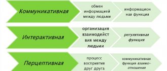 In a single process of communication, three sides can be roughly distinguished: communicative (transfer of information), interactive (interaction) and perceptual (mutual perception).